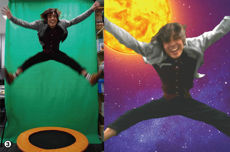我々の研究室では以前より、デジタルスポーツの一環としてトランポリン運動を題材にした研究を行っています[2]。今回はこのシステムのエンタテインメント性を高めるべく、NAKEDの映像技術と組み合わせた作品を制作しています(写真3)。トランポリン運動は意外に奥深いもので、トランポリンのどの部分に着地したかを足の裏で感触を確かめながらジャンプを調整しないとうまく飛ぶことができません。ビョンビョンとテンポよく飛ぶにはどうすればよいか、その微妙な感覚をセンサで捉えることに現在取り組んでいます。